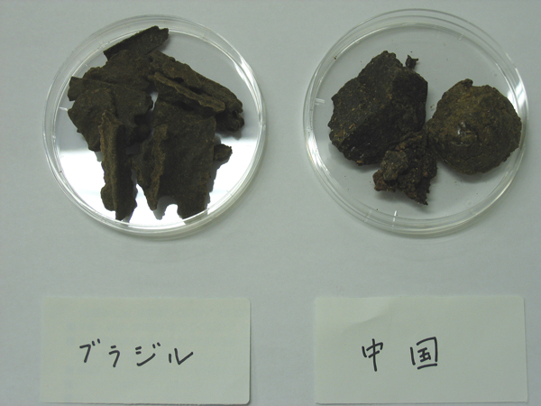 ブラジル産と中国産のプロポリス原塊比較
