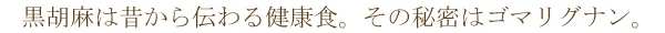 セサミンという成分は、ゴマリグナンの中に含まれる貴重な成分です。ゴマリグナンは、ごま全成分中に約1%しか含まれていません。その約半分をしめるセサミンはごまにしか含まれていないことが、判明しています。昔からごまは身体にいいといわれているのは、このセサミンが関係しているのが、近年の研究でわかってきています。家庭のごま油が他の食用油より酸化が遅いのは、実はセサミンを含んだゴマリグナンのおかげなのです。