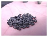 黒胡麻には必須アミノ酸をたっぷり含んだ良質なタンパク質や脂質、ビタミン類、ミネラル類、食物繊維などがたくさん含まれています。脂質には、リノール酸やリノレン酸などの不飽和脂肪酸が豊富に含まれ、健康維持に役立ちます。ミネラル類は鉄分やカルシウム、マグネシウムが豊富です。カルシウムなどは100g中1,200mgも含まれていて、牛乳の12倍にもあたります。また、胡麻には、セサミン・セサミノール・セサモールといったゴマリグナン類の特殊成分が含まれているのも特長であり、これが私たちの健康維持に役立つことがわかってきました。